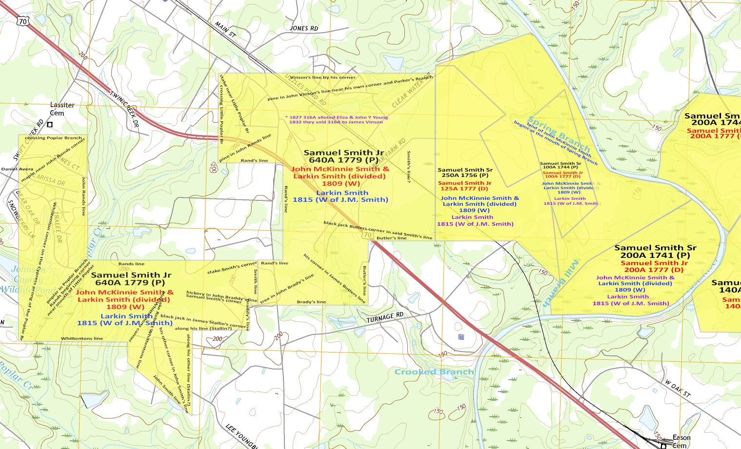 The legal proceedings required that a plat be made representing the tract of lands lying on the south side of Neuse River belonging to Larkin Smith & John McKinne Smith dec’d. A good find to tie all this land together.