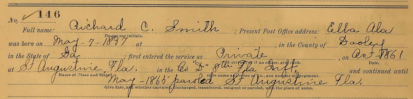 In the spring/summer of 1883, John W Smith’s oldest son Richard Calhoun Smith leaves Florida and migrates to Coffee County, Alabama. (This contradicts family tradition and research conducted by my grand-uncle in 1993. There is a lengthy examinayion of this, that will be explored in a future post on Richard Calhoun Smith)