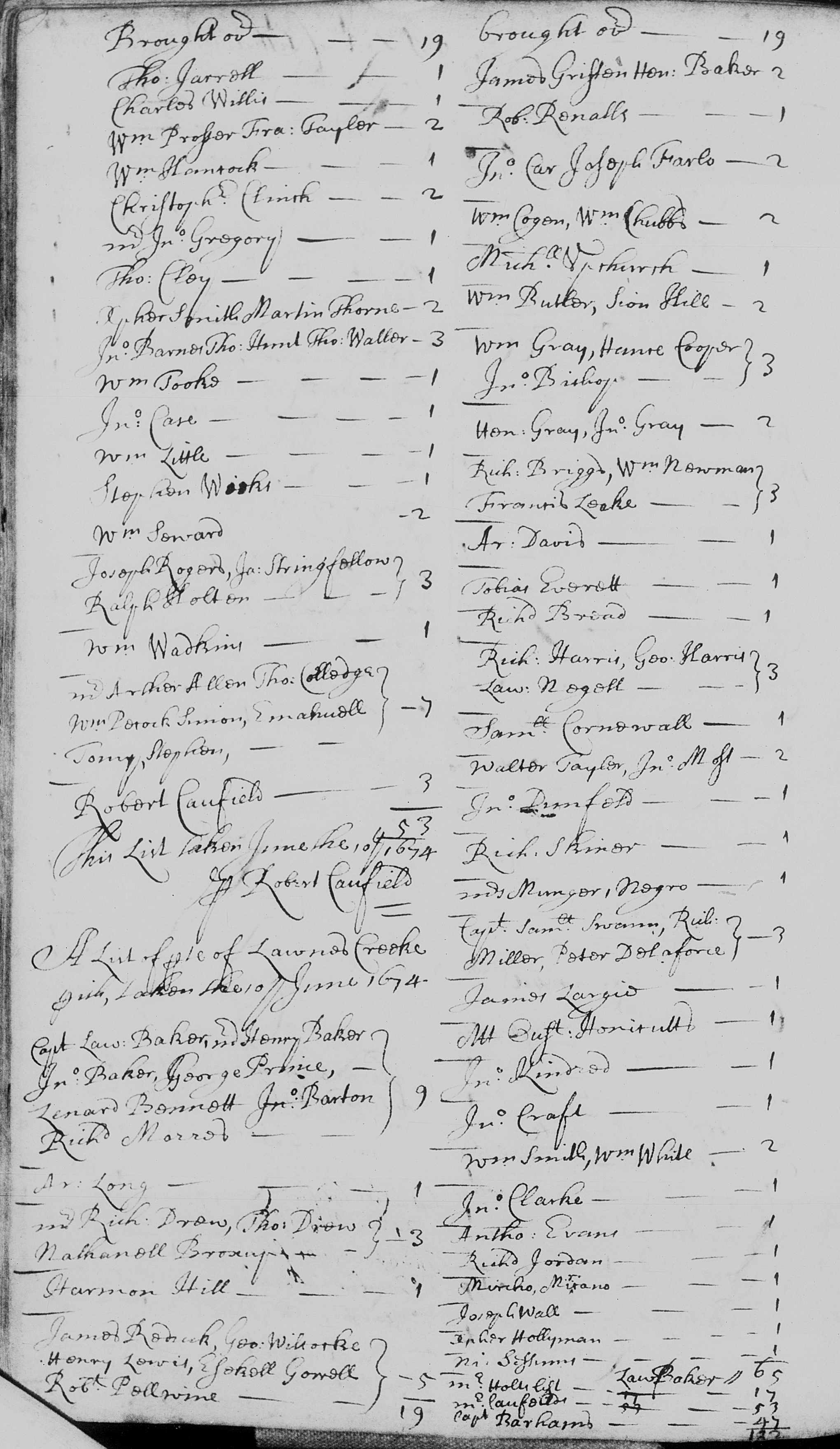 One year later, William Smith is listed in the 1674 Tithable List, this time alongside a new tithable named William White. Similar to previous instances, it would be advisable for future research to investigate the possibility of a preexisting relationship between William Smith and William White, possibly stemming from shared circumstances in England. However, it is likely that William Smith is primarily offering accommodations and support to William White.