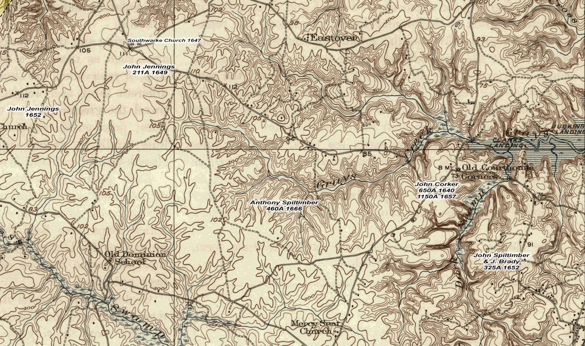 A neighboring landowner of John Jennings’ Surry property was Anthony Spiltimber, who married Mary Harris, yet another daughter of Robert Harris of Isle Of Wight.