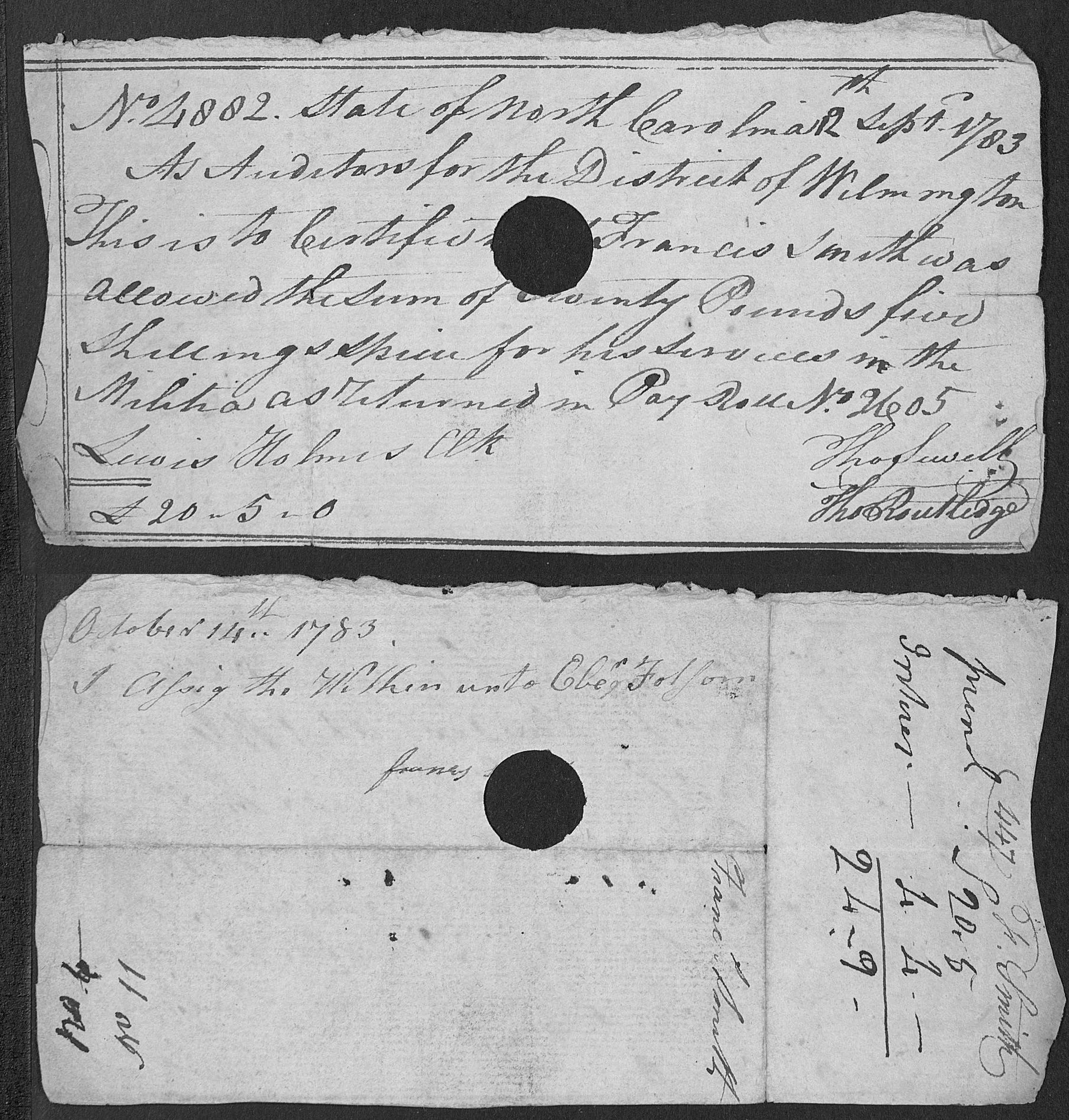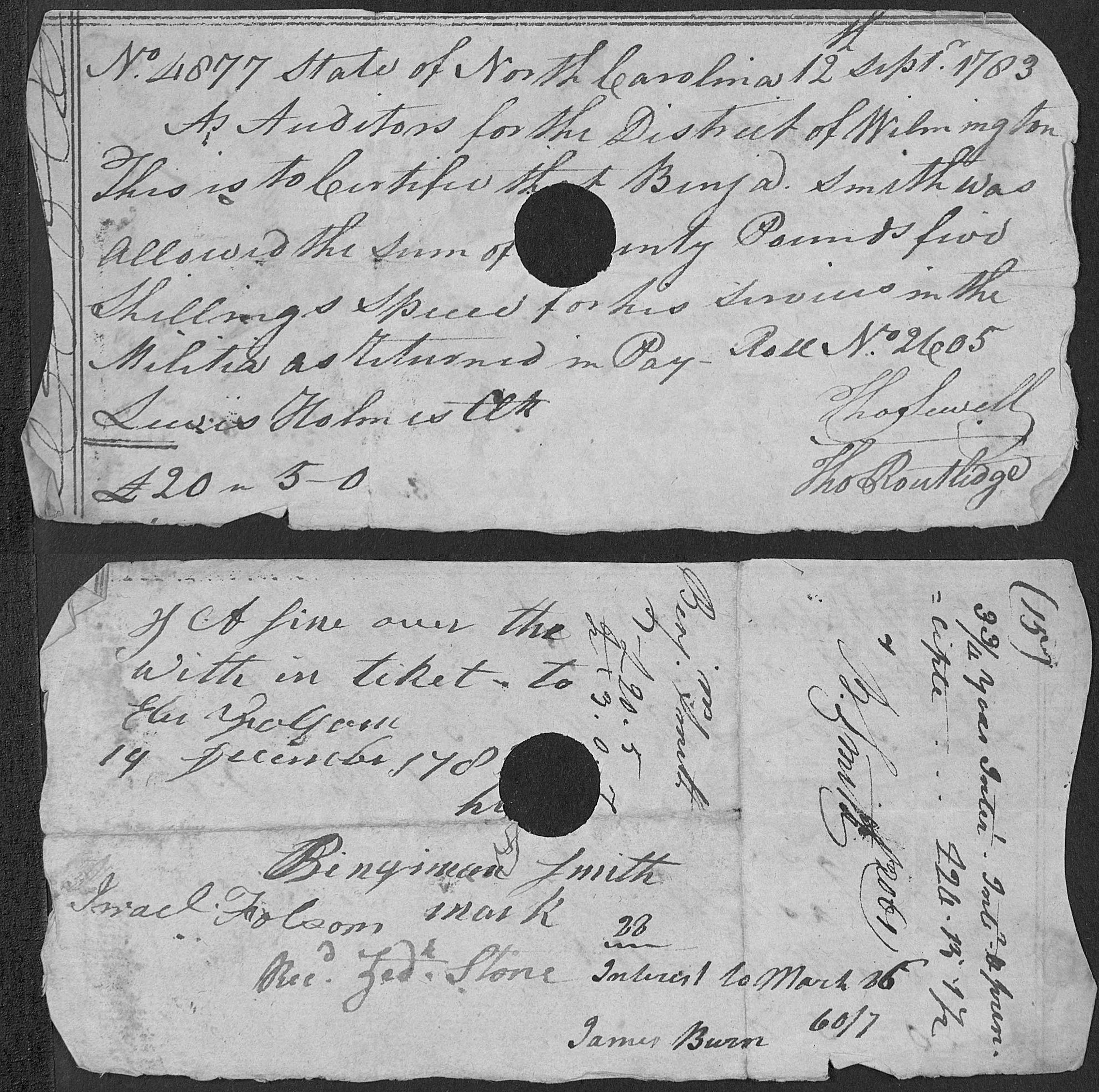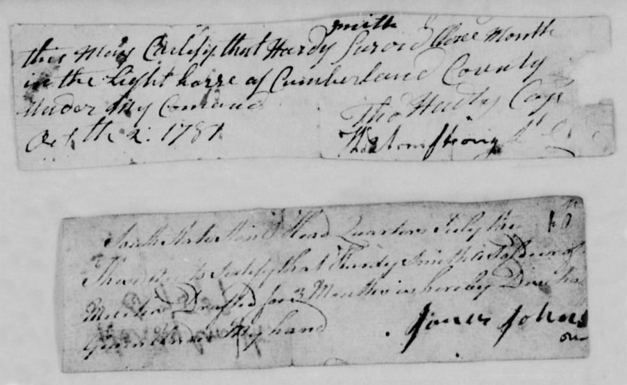 After the war Hardy Smith recieved a pay voucher for his service in the militia for £20.5. (£20.5 in 1783 had the same buying power as $3922 today)
