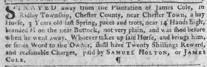 Meanwhile, James Cole, another of Stephen’s sons, is believed to have stayed in Pennsylvania, residing in the area between Ridley, Middletown and Aston Townships (these townships surrounded Chester).