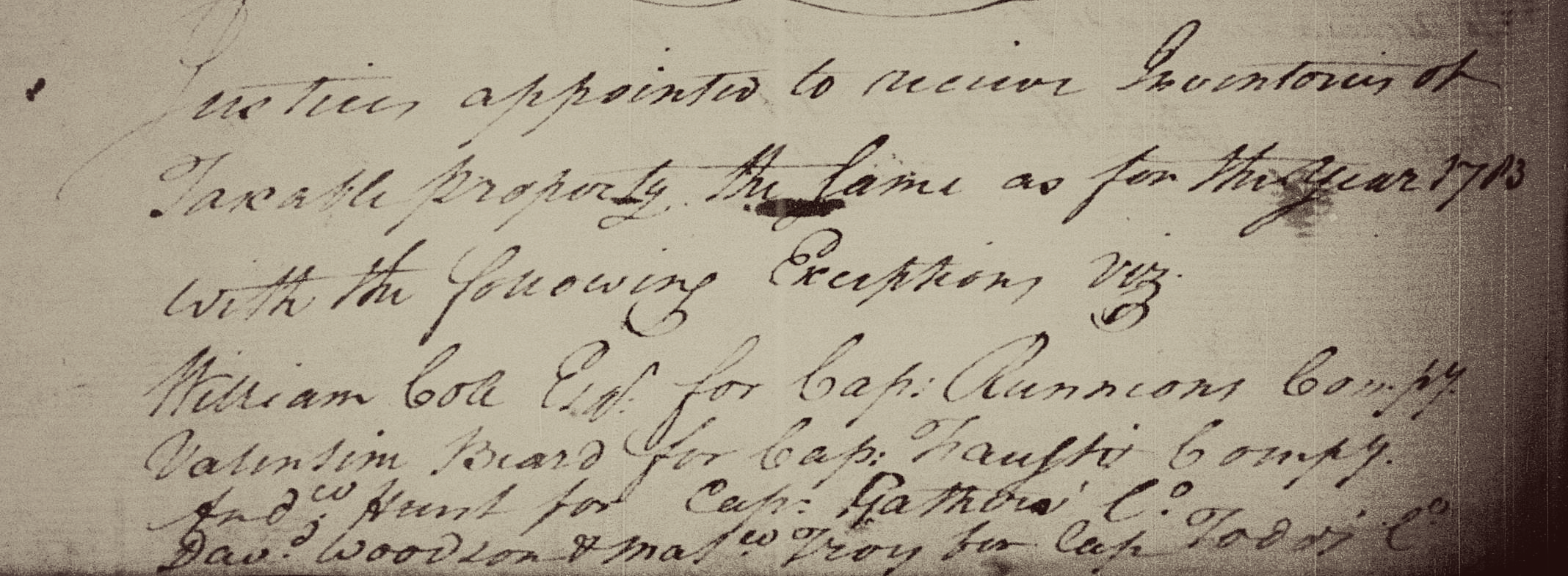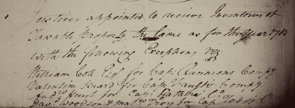 In 1783, William Cole, Esq., was appointed to oversee the collection of taxable property inventories in Rowan County, specifically within the jurisdiction of Captain Phineas Runyon’s company. In his capacity as a respected community figure and landowner, William Cole would have been entrusted with gathering detailed inventories of taxable property. These inventories included land acreage, livestock, agricultural yields, and other assets that contributed to the settler’s wealth.